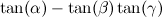 Therefore we have $$ y=(a+x\tan(\alpha))+(r-x\tan(\beta) \tan(\gamma))=a+r+x(\tan(\alpha)-\tan(\beta)\tan(\gamma)). $$