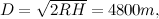R is the radius of the Earth, H is your height and D is how far you can see. The walking distance across the Earth's surface is the length of the arc s.