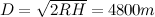 Now let $d$ be the distance from $P$ to $B$. Using Pythagoras' theorem on the right-angled triangle $OPB$, we get $$d^2+R^2=(R+h)^2.$$ Noting that $R > > h$, so that we can ignore the $h^2$ term, we have $$d \approx \sqrt{2Rh}.$$ Now the maximum distance to the object from the observer is approximately equal to $$D+d=\sqrt{2HR}+\sqrt{2Rh}.$$ Using $D=\sqrt{2RH}=4800m$, $R=6400km,$and $h=2km$ we get that the maximum distance to the object is approximately $164.8km.$