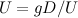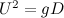 $$ \frac{1}{2} (U^2 - 2Uu + u^2) + gh \;=\; \frac{1}{2} (U^2 + 2Uu + u^2) - gh. $$So by subtracting $\frac{1}{2} U^2 + \frac{1}{2} u^2$ from each side and rearranging the result, we see that $$ gh = Uu. $$ But we have already seen, from the constancy of volume flow, that $hU = Du$. Therefore $$ hU = Du = D(Uu)/U = D(gh)/U. $$ So $hU = Dgh/U$; and the factors $h$ cancel to give $U = gD/U$. Multiplying by $U$ we see that $U^2 = gD$ and hence that $$ U = \surd(gD), $$