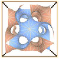 Many examples of triply periodic minimal surfaces were known prior to Schoen's work, but all examples had been constructed by thinking of a particular nice boundary curve and then finding the equation describing the soap film you'd get by dipping a wire frame shaped like the curve in soap solution. To make the surface repeat in space, these wire frames were constructed of straight lines, with "nice" angles, and the surface was then formed by rotating about these lines and reflecting in planes. For example, the CLP surface has a wire frame shown in figure 5.