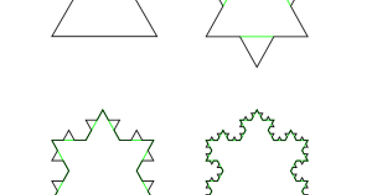 Lastly, it is worth remembering that this notion of Hausdorff dimension is by no means obvious, nor is it the only way to define dimension. Sierpiński’s triangle and von Koch’s curve were originally created as examples in the process of teasing apart what would eventually become Hausdorff dimension from the older notion of topological dimension (any curve, no matter whether it is von Koch’s curve or space-filling, has topological dimension 1). For a long time these constructions were regarded mostly as mathematical curiosities; until in the 1970’s a mathematician named Benoit Mandelbrot realised that many shapes in nature, such as the coastline of Britain or the leaves of a fern, exhibit the same kinds of scaling properties that these earlier purely mathematical constructions had. He then went on to coin and popularise the term fractal to describe such shapes whose Hausdorff dimension exceeds their topological dimension, and fractals have been in the popular mathematical imagination ever since.