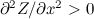 The term on the right-hand side of equation (1) is a little more complex than the left, but essentially it encapsulates the idea that the zombies are moving from high to low densities. This is illustrated with the help of figure 2. Initially, there are many more zombies on the left than the right. Just before the peak in density the arrow (which is the tangent to the curve, or $\partial Z/\partial x$, at this point) is pointing upwards. This means that as $x$ increases, so does the zombie density, $Z$. At this point $$ \frac{\partial Z}{\partial x} = \mbox{rate of change of }Z\mbox{ as x increases }>0. $$ Just after the peak the arrow is pointing down. Thus, at this point, $$ \frac{\partial Z}{\partial x} = \mbox{rate of change of }Z\mbox{ as }x\mbox{ increases }<0. $$ Hence, at the peak, $\partial Z/\partial x$ is decreasing as $x$ increases (because it moves from being positive to being negative). Since $\partial ^2 Z/\partial x^2 $ is the rate of change of $\partial Z/ \partial x$ as $x$ increases and we have just deduced that $\partial Z/\partial x$ is decreasing at the peak, $$ \frac{\partial ^2 Z}{\partial x^2} <0. $$ From the diffusion equation we see that, at the peak, $$ \frac{\partial Z}{\partial t} = D\frac{\partial ^2 Z}{\partial x^2} <0, $$ this means that the peak of zombie density is decreasing over time. Similarly, $\partial Z/\partial x < 0$ just before the trough and $\partial Z/\partial x > 0$ after the trough, as shown in figure 2. Thus, at the trough, $\partial ^2Z/\partial x^2 > 0$, implying that the density of zombies is increasing. Overall we see that diffusion causes zombies to move from regions of high density to low density.