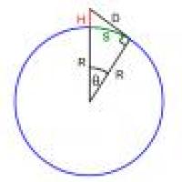 Solution to problem 1: In Issue 54's Outer Space you were asked to work out the "walking" distance over the Earth's surface to the horizon. This is equal to the length $s$ of the arc of the circle from the point where you are to the point where your line of sight hits the surface of the Earth, which is $$s=R\theta$$ where $\theta$ is the angle as shown in the diagram and $R$ is the radius of the Earth. Now bearing in mind that we have a right-angled triangle we have $$\cos{\theta}=R/(R+H),$$ so $$s=R\cos^{-1}{(R/(R+H))}.$$ If $R$ is much larger than $H$ then the straight line distance to the horizon is approximately equal to $\sqrt{2HR}$, as we worked out in the article. Moreover, in this case the straight line distance is approximately equal to the walking distance over the Earth's surface. This gives that for $R>>H$ $$R\cos^{-1}(R/(R+H)) \approx \sqrt{2HR}.$$