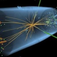 The image above illustrates particle collisions at the LHC and is courtesy CMS.