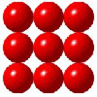 The face centred cubic packing (left) consists of layers of spheres. Each layer is positioned so that the spheres rest on the 'holes' of the layer below. This arrangement is not unique, the hexagonal close packing (right) is constructed in a similar way and is equally efficient.