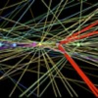 Detecting the Higgs boson starts with a bottle of hydrogen in the CERN accelerator complex. The hydrogen is heated and ionised, and the protons are skimmed off using electric and magnetic fields and stored in the LHC accelerator, which sits in a 27km long circular tunnel, about the same length as London's Circle Line. A complicated set of super-conducting magnets and electric fields accelerate the protons round the ring at speeds close to that of light. There are in fact two beams of protons going around the ring in opposite directions. At various points the streams cross and protons collide. There are huge detectors placed around the crossing points, to observe the particles that come out of the collisions. The ATLAS detector, at 22m as high as a five story building, is one of them. Detectors like ATLAS act like three-dimensional digital cameras: they measure the tracks of particles coming out of the collision in the centre. From the properties of the tracks (how much they curve in magnetic fields for instance), various properties of the particles that made them can be inferred: their electric charges or their energies, for example.