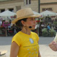 This summer, while at a conference in Poland, we were lucky enough to watch Sara Santos and her maths buskers perform on the streets of Krakow, handcuffing innocent Krakowians (a punishment for dividing by zero), constructing emergency pentagons, and reading minds. Maths busking is about showing the public the surprising and fascinating side of mathematics through the medium of street performance. Sara Santos is co-founder of Maths Busking, which is both a network of performers and a business delivering training, school and entertainment services. The training sessions are particularly popular amongst teachers, science communicators, and researchers in mathematics and sciences.