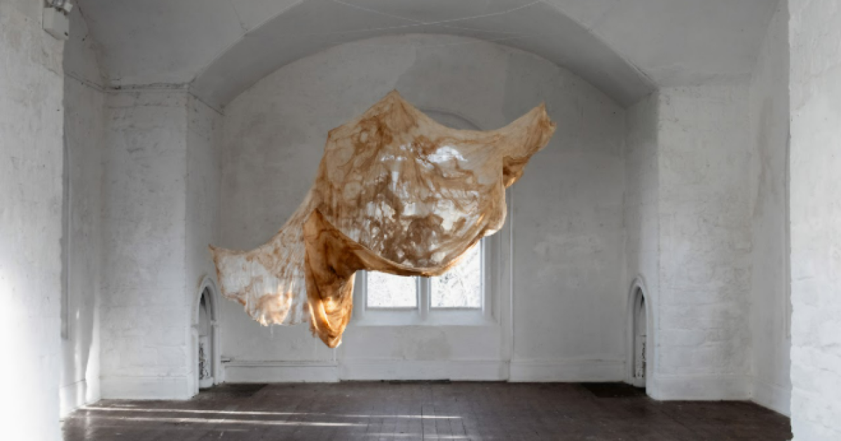 A description of the Aral Sea in Central Asia is usually written in the past tense. In the mid 1960s, it was one of the largest inland lakes in the world. Alas, now, due to Soviet irrigation projects, it has largely dried up into desert, leaving behind a skeleton scarred by sediment and salt, rippled by boundary layers and fluid mechanics, all of course governed by mathematics. The work was created with silk and cotton, intentionally chosen as both materials were grown with water that could have fed the Aral Sea. The piece is hung unevenly from the ceiling were light from nearby windows pierces it, making its randomness beautiful, its chaos candescent.