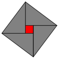 The second visual proof is probably similar to one used by the ancient Indian mathematician Bhaskara. Again, it's a rearrangement of regions within the initial two squares that give the proof. To replay the animated gif simply hover your mouse over the image.