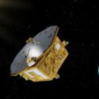 An artist's rendering of the Laser Interferometer Space Antenna (LISA), another huge scientific project which will be launched in 2030. Image: Credits: ESA/C. Carreau.