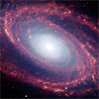The magnificent spiral arms of the nearby galaxy Messier 81 are highlighted in this NASA Spitzer Space Telescope image. Image courtesy NASA Jet Propulsion Laboratory.